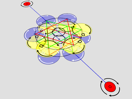 und dabei sind die 3 Up- und 3 Down-Quarks einer jeden Ebene um 180° versetzt.
