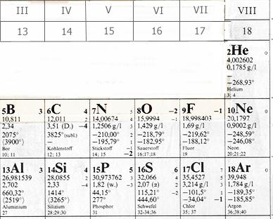 Alle Elemente über dem Kohlenstoff bis zum Neon sind leichte Gase.